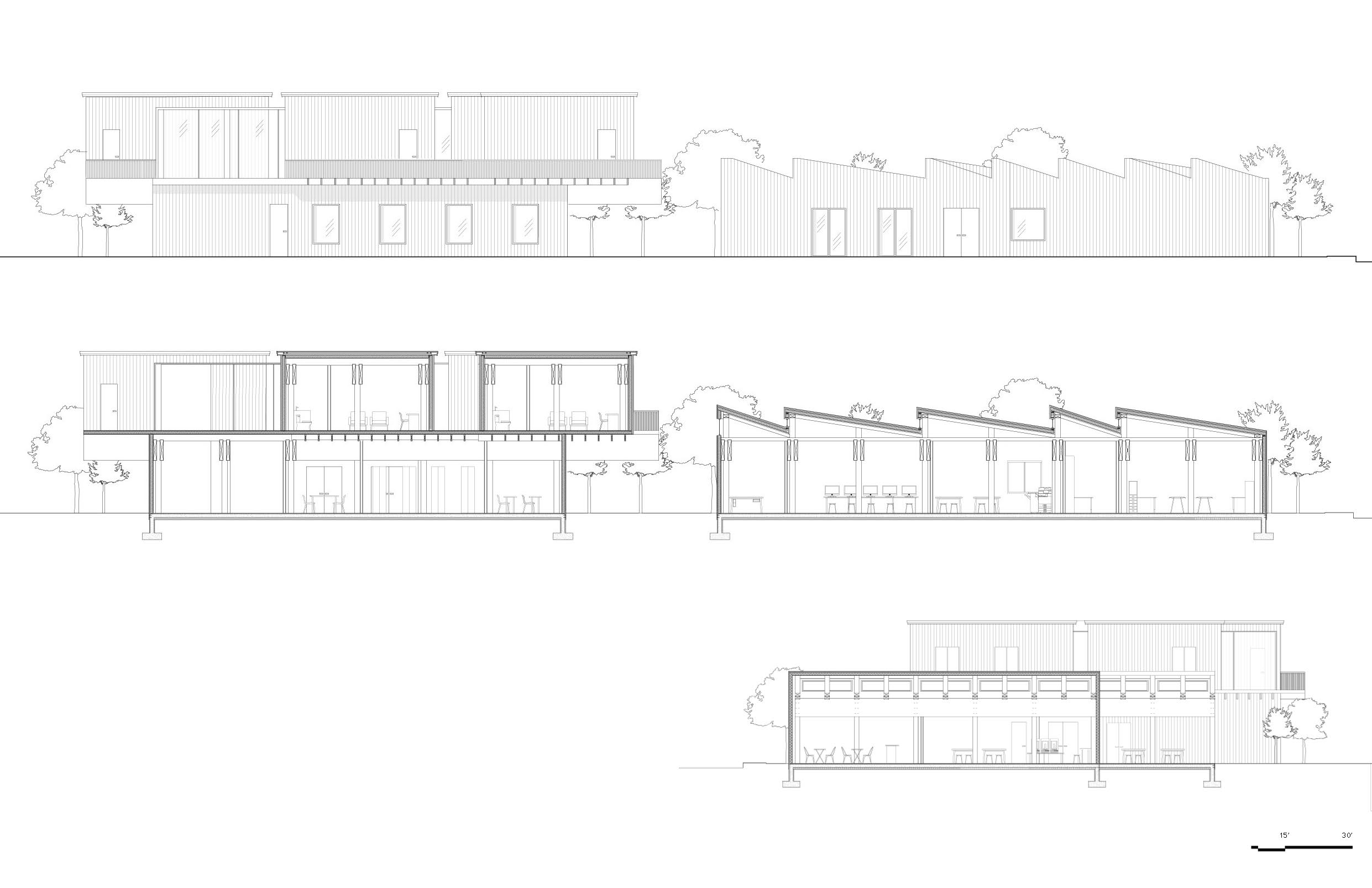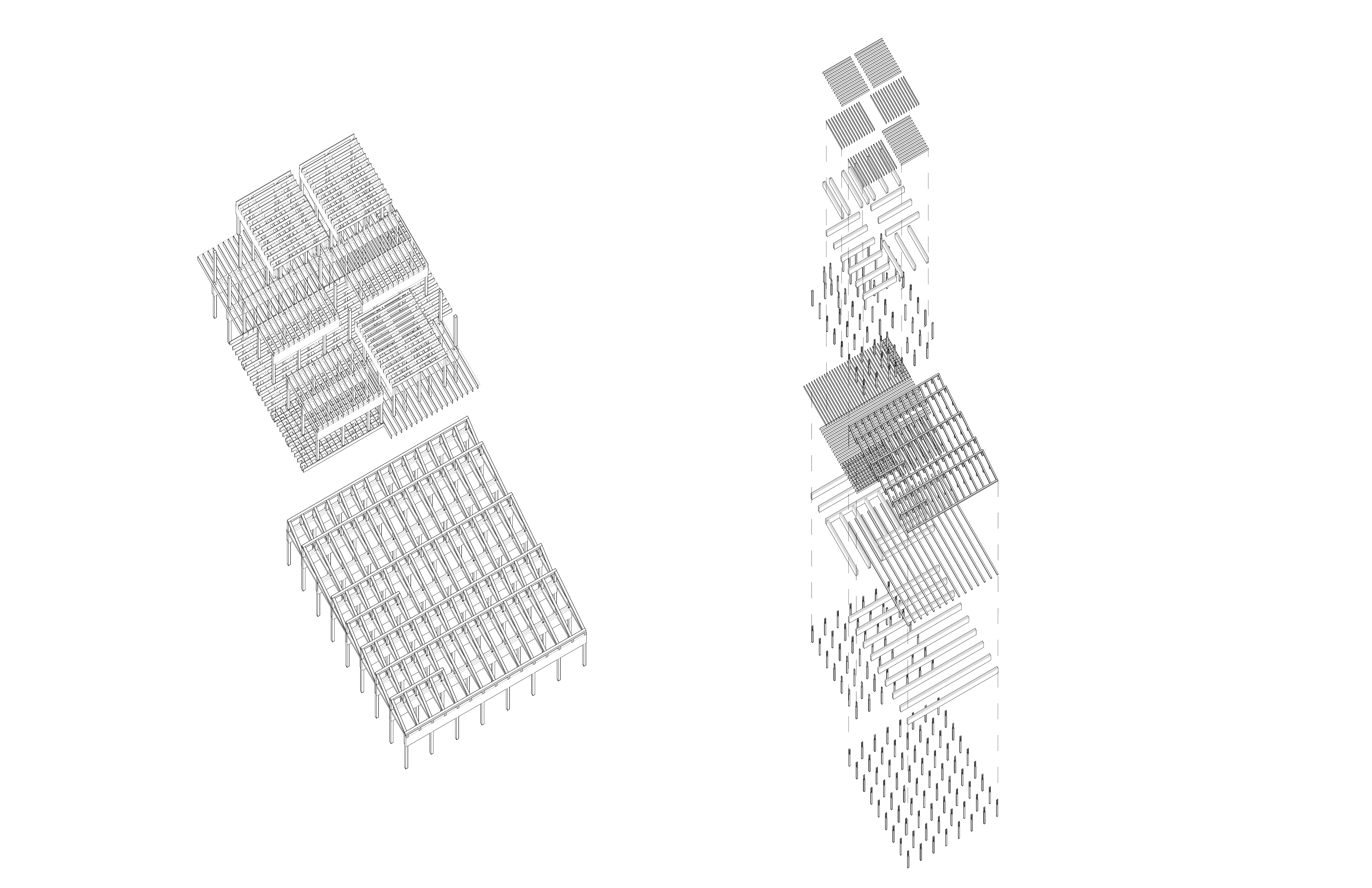 The first phase of this project consisted of creating a wooden screen based off of observations about light. The panel consists of a series of wooden rectangles that rotate at each level and therefore filter the light differently depending on the location of the light source. The next phase of the project consisted of creating a wooden artist residency located in Ithaca, New York based off of these studies on wood and light. The idea of stacking from the screen was translated into a layout of programs that are divided into multiple buildings and individual spaces that may then be stacked. By stacking some of these spaces, there are then open spaces created in between that then became courtyards.